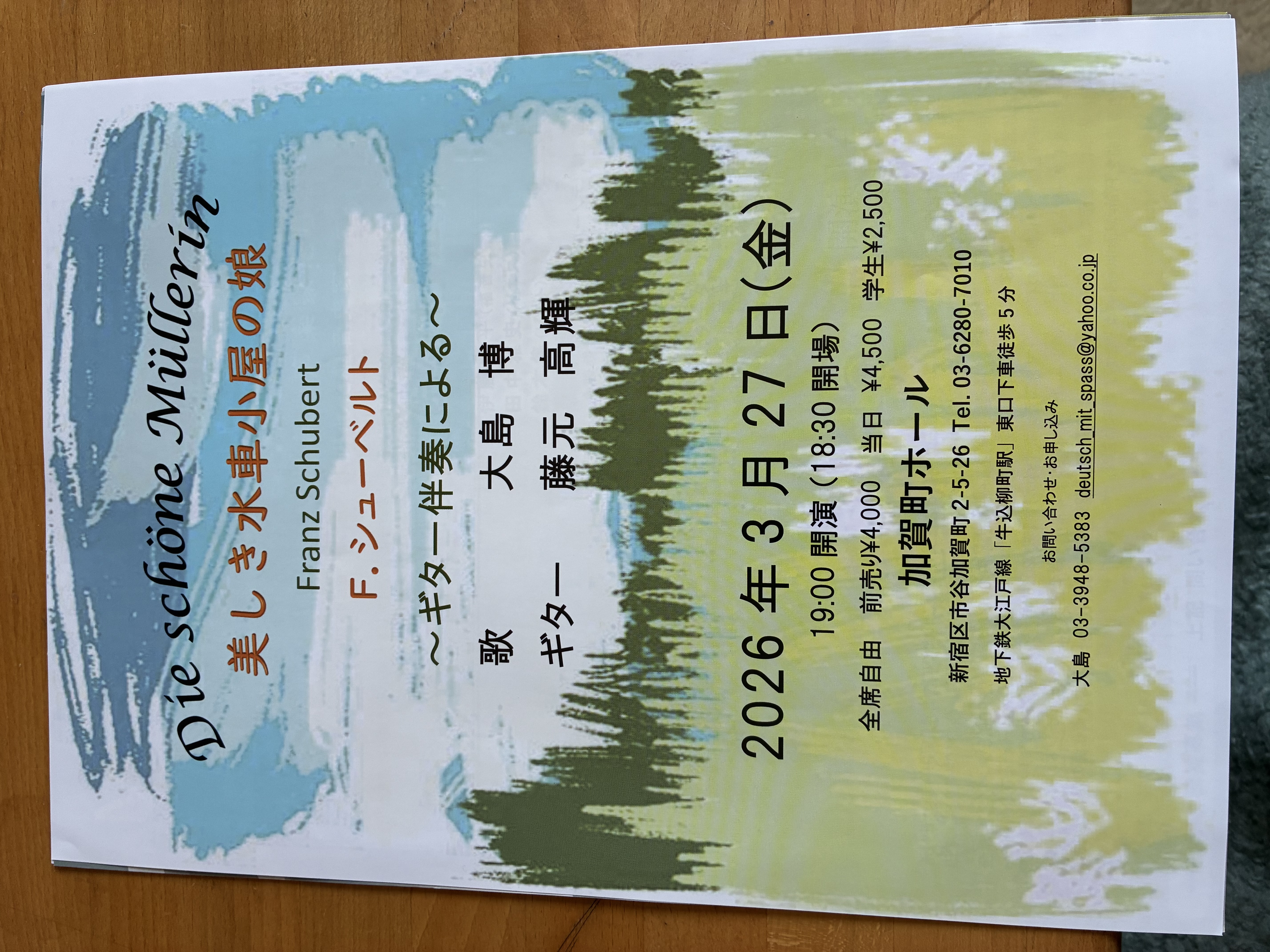 全席自由 前売り3500円 (当日4000円、学生2500円)